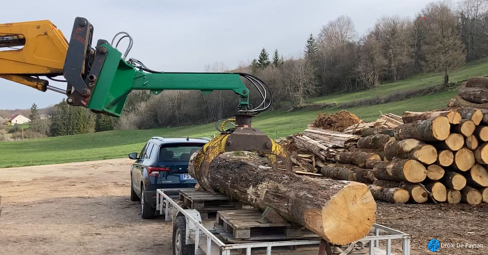 Arrivée à la scierie mobile de Laura au Grand-Abergement 01, d'un chêne ( bientôt un diaporama complet sur le site DDp)